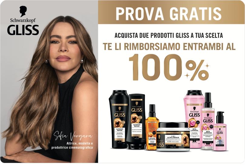 Acquista 2 prodotti del marchio Gliss per ottenere il rimborso del 100% dei prodotti acquistati.