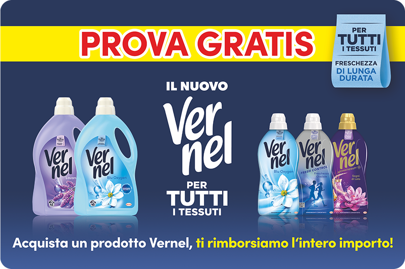 Acquista dal 15/09/2025 al 30/11/2025 1 prodotto della linea Vernel per ricevere il rimborso del 100% del prodotto acquistato.